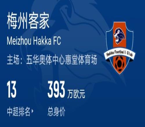 长春亚泰363万欧、青岛海牛366万欧、梅州客家393万欧、深圳新鹏城623万欧