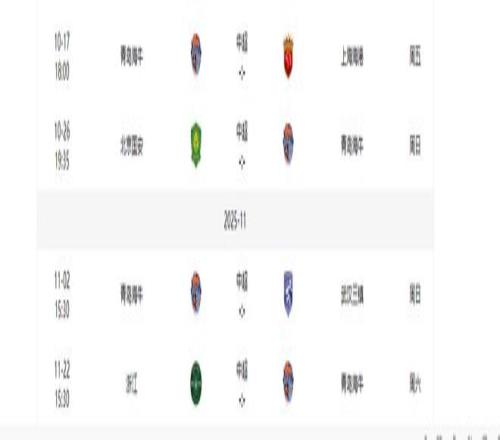 青岛海牛2主2客,对手有上海海港(1)、北京国安(4)、武汉三镇(12)、浙江队(7)