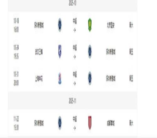 深圳新鹏城2主2客,对手有北京国安(4)、武汉三镇(12)、上海申花(3)、成都蓉城(2)