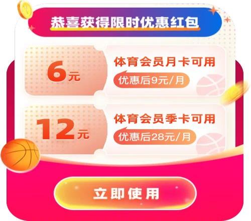 即可领取体育会员限时优惠红包