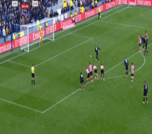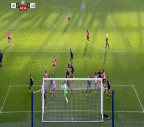 第41分钟,穆杰莱倒挂金钩打门,皮克福德救险